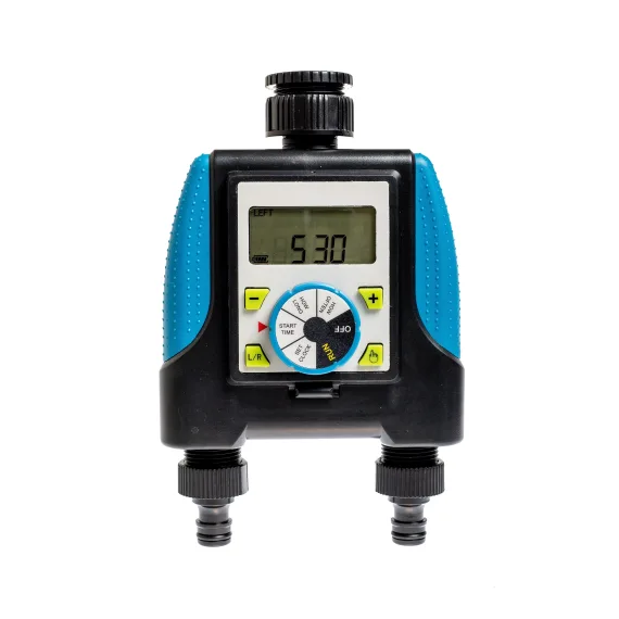 - Dual outlets for watering two zones independently