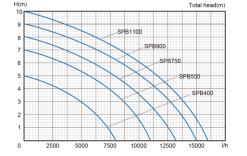 - Max. flow (Q=L/hr): 13500L/hr = 225L/min